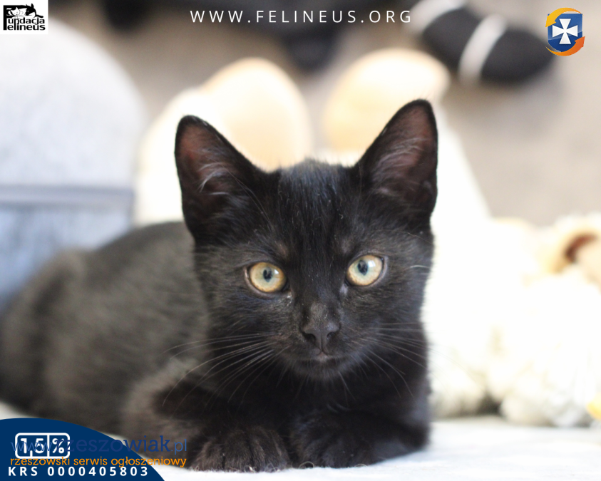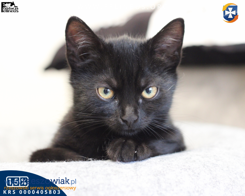 Dragon to przystojny i smukły koci gentleman urodzony w lipcu 2025 roku. Dragon, niczym wielki smok, bo z całego rodzeństwa to właśnie on jest największy. Ale to smocze serce jest niezwykle łagodne i przyjaźnie nastawione do świata. Dragon to kot rozdający baranki i domagający się głasków. Ten gość potrafi głośno zamruczeć już na sam widok swojego opiekuna. Tak samo otwartą i przyjazną postawę wykazuje wobec innych kotów, z którymi lubi poszaleć czy uciąć sobie słodką drzemkę. Jest odważny i towarzyski, ale jednocześnie nienachalny. Jak większość młodych kotów, tak i Dragon, lubi wskoczyć i zaglądnąć tu i ówdzie, bo przecież świat jest tak ciekawy. Dlatego dla jego bezpieczeństwa, okna oraz balkony w jego nowym domu powinny być zabezpieczone siatką. Dragonek szuka kochającego domu, najlepiej takiego do którego będzie mógł zabrać kociaka z rodzeństwa, lub w którym pozna nowego kociego kompana do zabaw i psot. Nie jest to jednak warunek konieczny, o ile jesteś w stanie poświęcić mu wystarczająco dużo czasu i uwagi, wliczając w to długie sesje głaskania i mruczenia.