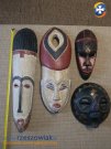 Drewniane maski z Ghany. Największa 60x15. 50x20. 30x15. Okrągła średnica 25 cm.
