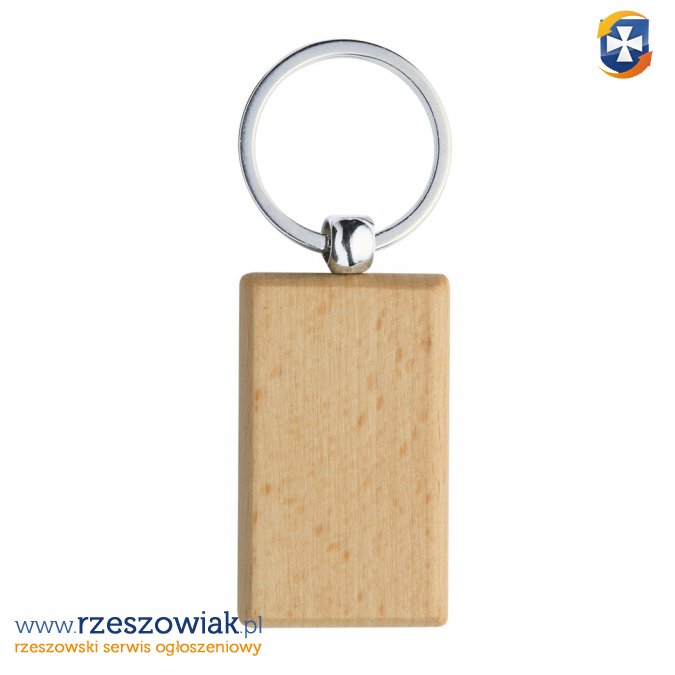 Drewniany brelok do kluczy z grawerem.