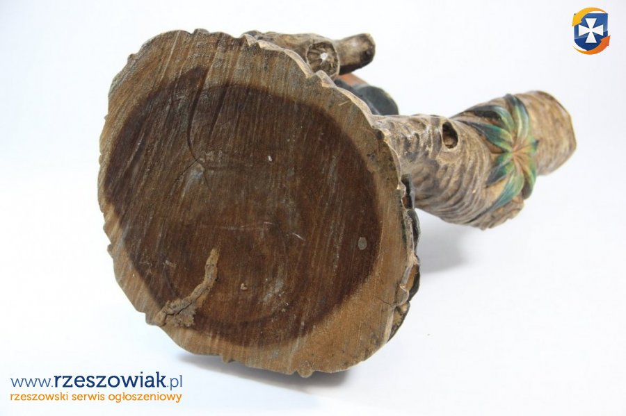 Duża rzeżba ptak Tukan wykonany w drzewie egzotycznym,naturalne kolory ,w pniu jest otwór na ziarno,średnica 60 cm.wys.45.ciężar 5,30 kg.