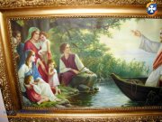 Obraz w pięknej ramie duży Jezus na łodzi