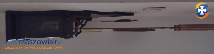 Duży piękny zegar ścienny z wahadłem. Nakręcany na chodzenie i na bicie poprzez podciąganie ciężarków. Zegar pięknie wybija godziny i połówki. Dźwięk miły, łagodny, stonowany (bim bam).