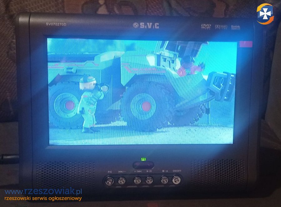 Duży zestaw Zasilacz do domu, pilot,kabel do samochodu,mocowanie na zagłowek i torba Jest praktycznie nowy (folia na ekranie) tylko leży już chwilkę ale działa