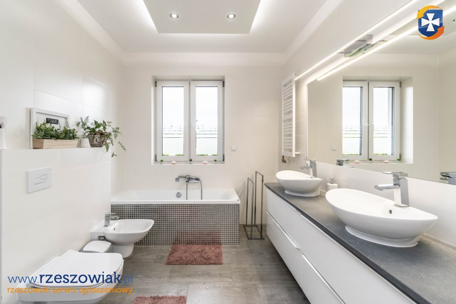 - ŁAZIENKA - 6,31 m2 - wyposażona w prysznic liniowy, dwie umywalki, toaletę, bidet, wannę oraz szafki w zabudowie,
