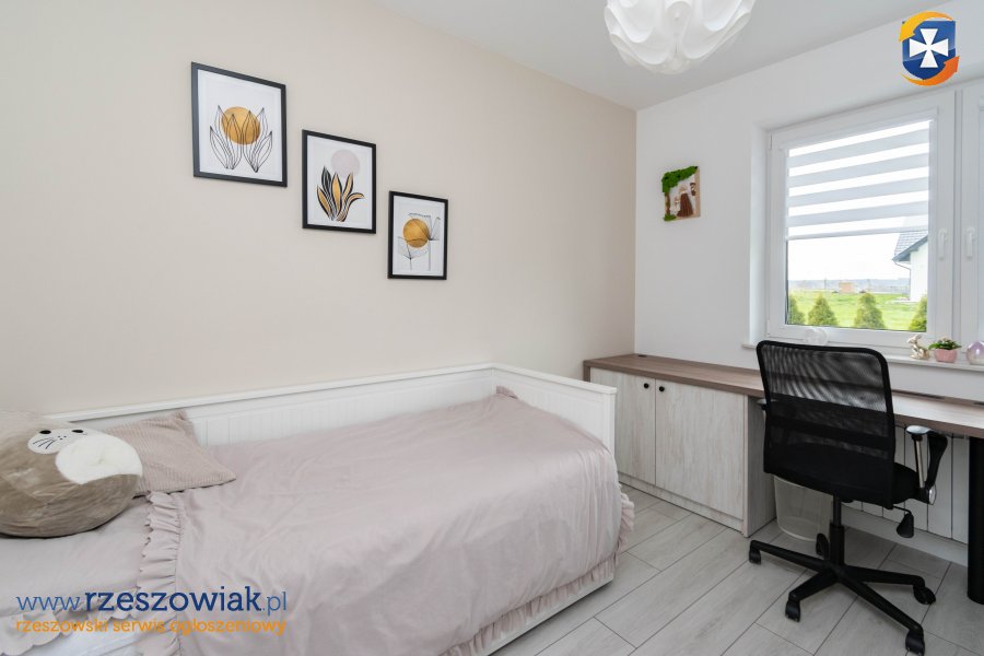- SYPIALNIA - 14,99 m2 - szafa w zabudowie, duże łóżko tapicerowane, biurko + fotel,