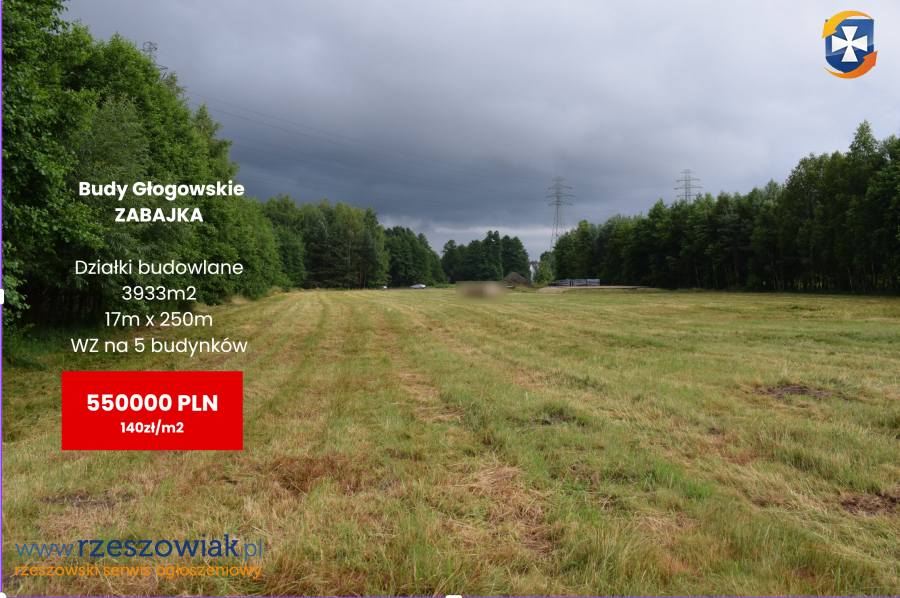 Oferujemy do sprzedaży działkę o powierzchni 39a w miejscowości Budy Głogowskie, gmina Głogów Małopolski, powiat rzeszowski.