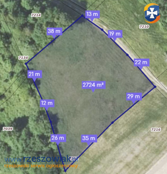 Działka na terenie miejscowości Golcowa o powierzchni 2724 m2 (klasa gruntu RIVa)