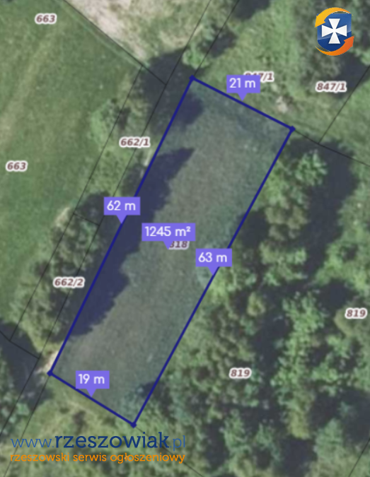 Działka rolna na terenie miejscowości Izdebki o powierzchni 1245 m2 (klasa gruntu RIVb).
