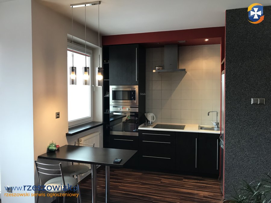 Mieszkanie jest w pełni umeblowane i wyposażone w sprzęt AGD i RTV (lodówka, piekarnik, kuchenka, mikrofalówka, pralka, telewizor). We wszystkich oknach są rolety.