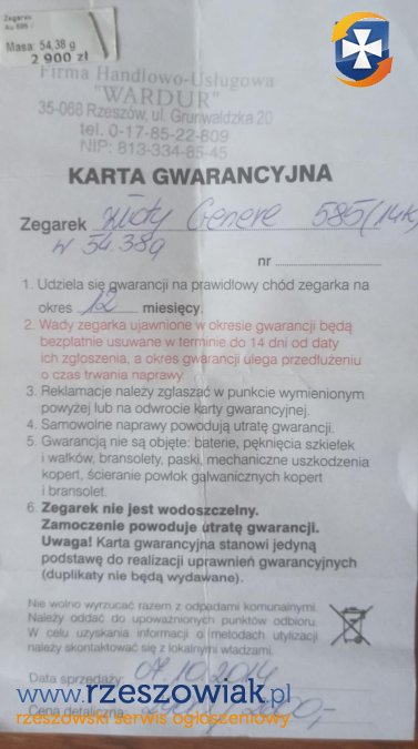 Dzień dobry, sprzedam złoty zegarek marki GENEVE. Cena: 9.500 złotych (do negocjacji).