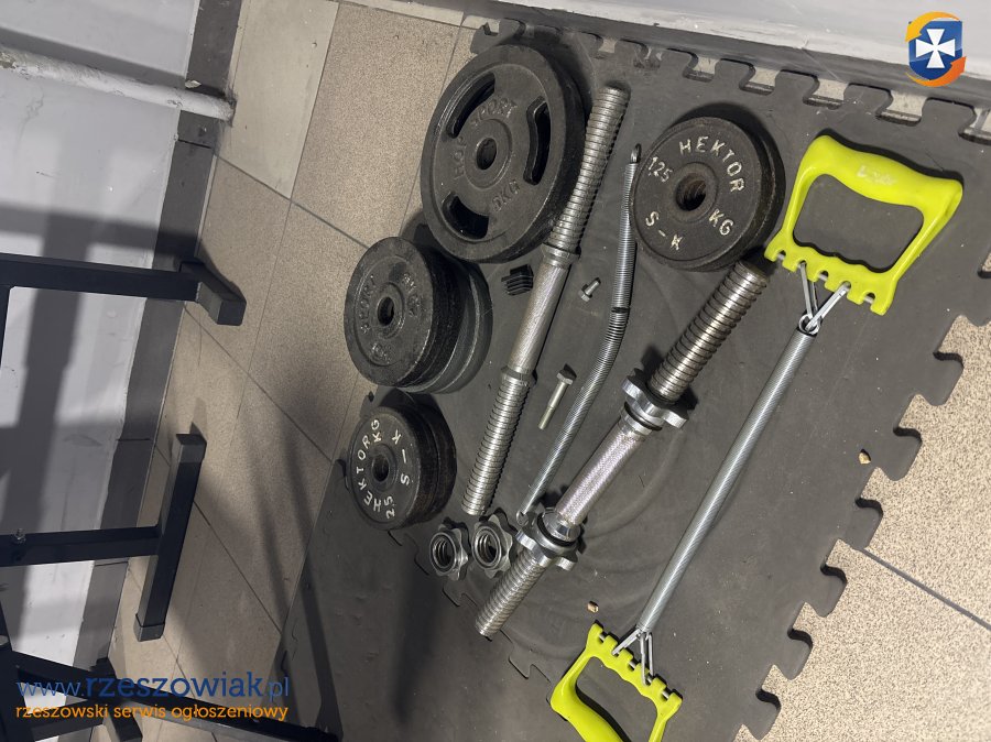 Zestaw do ćwiczeń. Obciążenia metalowe 2 x 10 kg, 2 x 5 kg, 8 x 2, 5 kg, 2 x 1,25 kg. Odbiór osobisty Rzeszów.