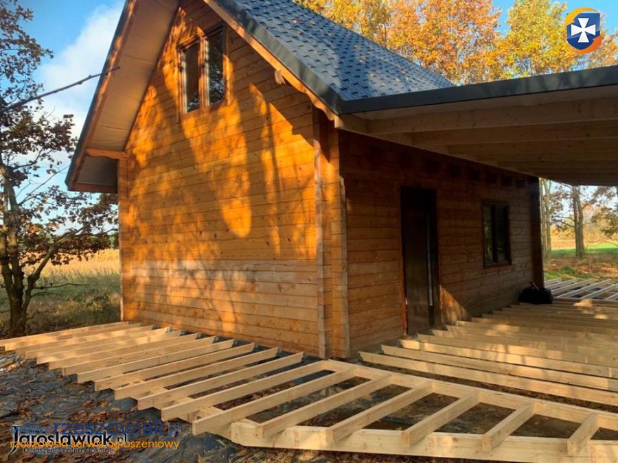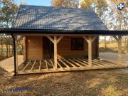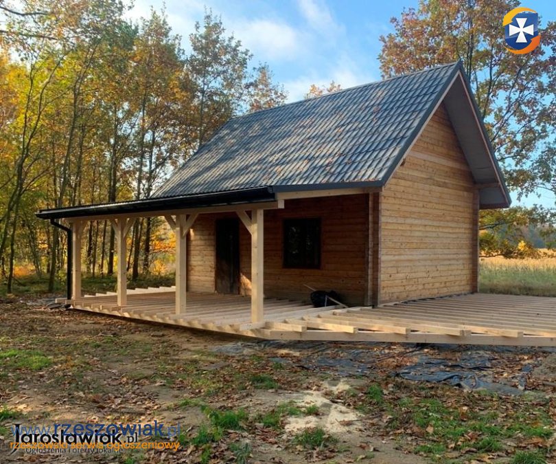 Przedmiotem sprzedaży jest drewniany budynek o pow. 35 m2 z użytkowym poddaszem, niepodpiwniczony, wybudowany w grudniu 2022 roku z drewna świerkowego (belki 10x10), posadowiony na działce o pow. 14 ar.