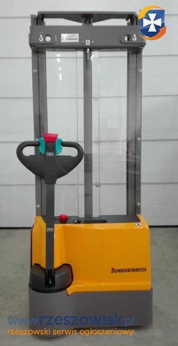 Elektryczny wózek podnośnikowy Jungheinrich EJC M10 ZT o podwójnym maszcie teleskopowym oraz wysokości podnoszenia - 3,3 m. i udźwigu 1000 kg. STAN IDEALNY - TYLKO 33 Mtg.