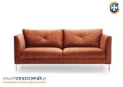 Nowoczesna z odrobiną klasyki, lekka sofa, na pięknych metalowych nogach w kolorze miedzi. Farina jest starannie wykończona, dlatego może stać na środku pomieszczenia. Poduchy oparcia mają dekoracyjne przeszycie, które nadaje sofie elegancji.