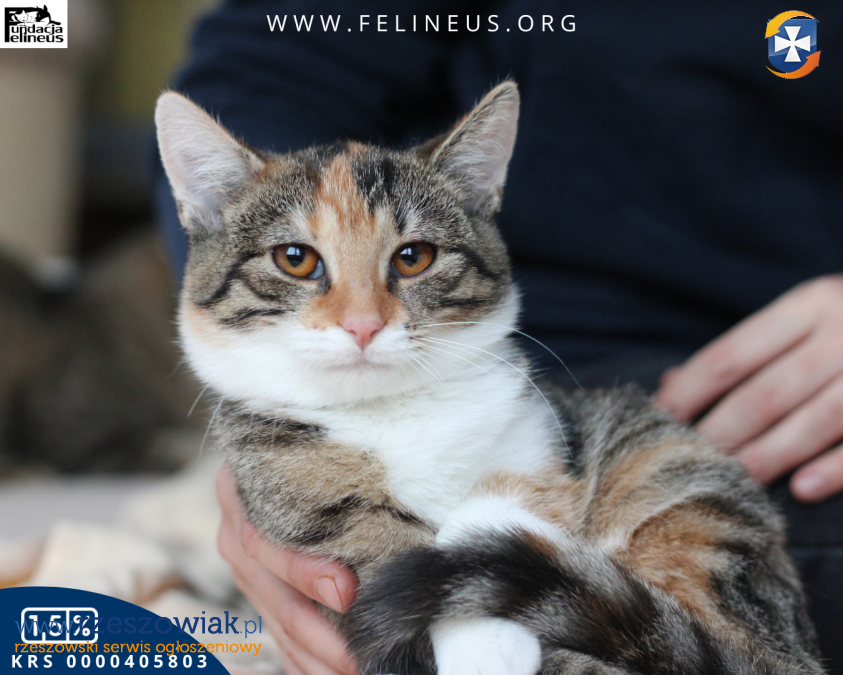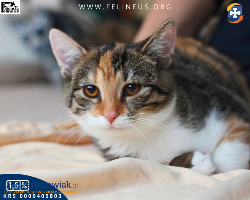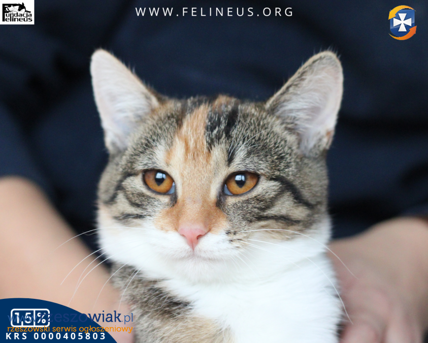 Fela to prześliczna, trójkolorowa kotka urodzona w lipcu 2025 roku. W domu tymczasowym dostała przydomek âSpicyâ bo to najbardziej wyraźna istotka z duetu. Pierwsza z teamu âSpice Girlsâ. Posiada jak na muzyka przystało słuch absolutny. Usłyszy pierwsze nutki wydobywające się z każdej zabawki. Bardzo zabawowa, kontaktowa - jeśli chodzi o inne istoty jej gatunku. Bo co do człowieka, preferuje tego rytmicznie oddychającego we śnie. Jest odważna, ale strachliwa. Gdy znajduje się w ludzkich ramionach to w pierwszej chwili zamiera ze strachu. Ale delikatne głaskanie uwalnia jej wokal przyjemności. Wymaga na początku cierpliwej opieki. Ale to niezaprzeczalnie bardzo inteligentna istota, dlatego przy odrobinie pracy i cierpliwości z pewnością w przyszłości będzie bardzo kochającym kotkiem.