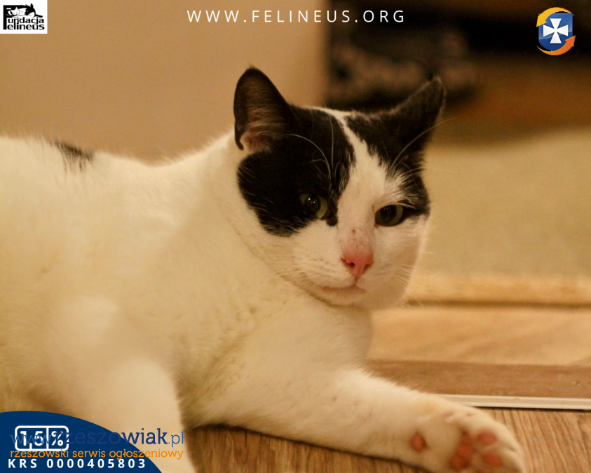 Feluś - kocurek urodzony w 2022 roku. Feluś to bardzo sympatyczny i grzeczny kot. Chętnie towarzyszy człowiekowi w codziennych czynnościach, jest ciekawski, a swymi wielkimi oczami prosi o porcję uwagi i pieszczot. To kot bardzo spokojny i ugodowy, nie sprawiający kłopotu. Wzorowo korzysta z kuwety i wie co to drapak. Szuka kochającego domu, w którym stanie się członkiem rodziny i będzie mógł odwzajemnić miłość, której pełno w jego kocim serduszku.