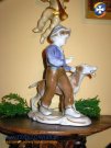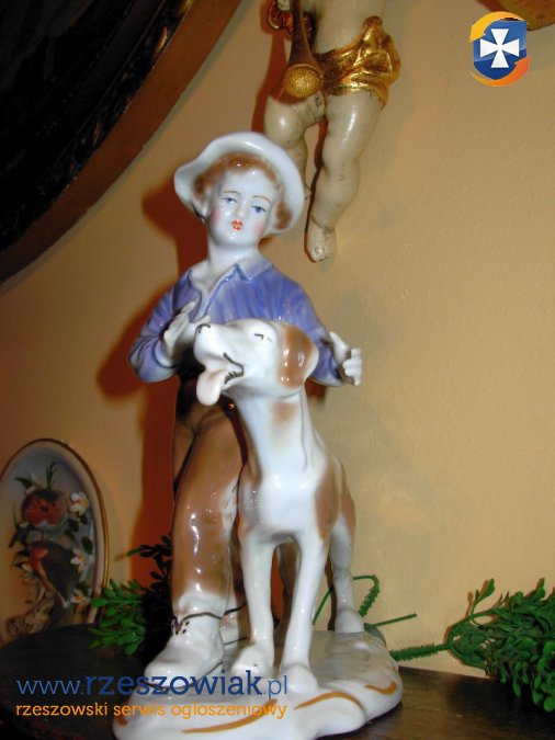 Figurka porcelana sygnowana szkliwiona przedstawia chłopca z jego najlepszym przyjacielem psem.Przedmiot stary z lekkim mało widocznym uszczerbkiem palców prawej ręki.wys.20cm szer.15cm.przedmiot z pieczęcią i sygnaturą.