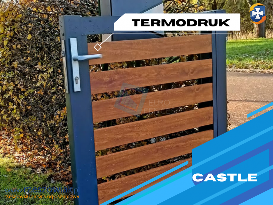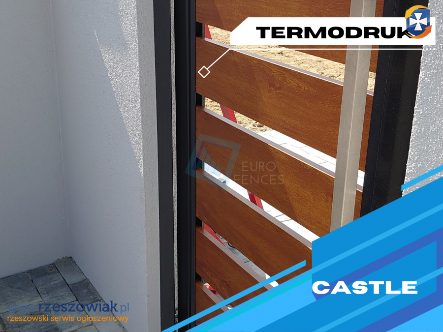 Profile aluminiowe malowane są proszkowo na dowolny kolor wybrany z palety RAL (3 faktury lakieru). Możliwe jest również zastosowanie okleiny drewnopodobnej (TERMODRUK) jako doskonałej alternatywy dla ogrodzeń drewnianych.