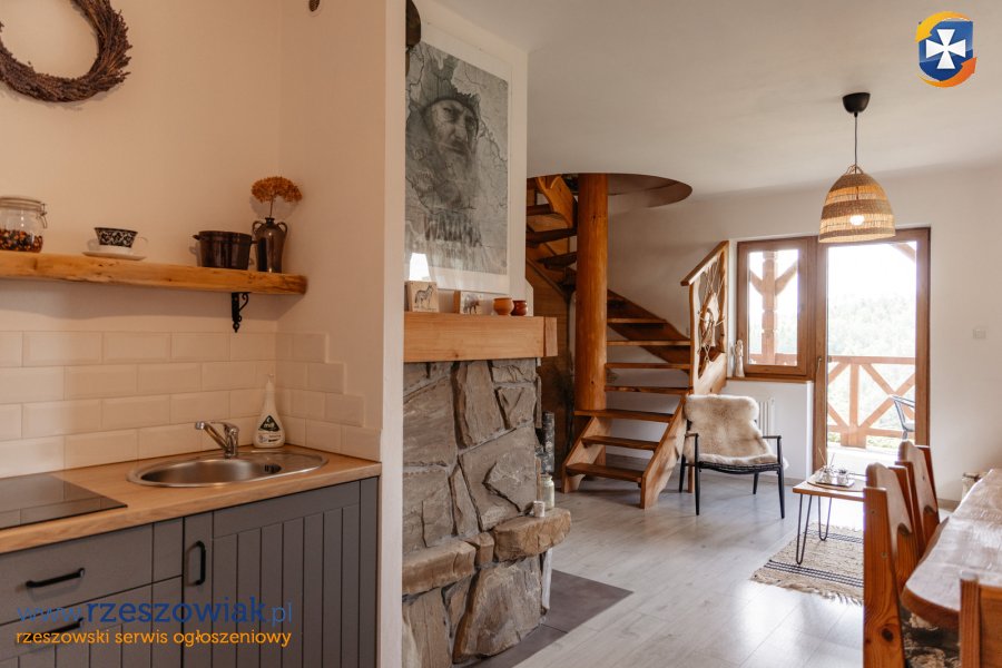 Trzy apartamenty dwupoziomowe: W pełni wyposażone, łączące nowoczesny komfort z bieszczadzkim stylem (drewniane meble, dodatki od lokalnych twórców).