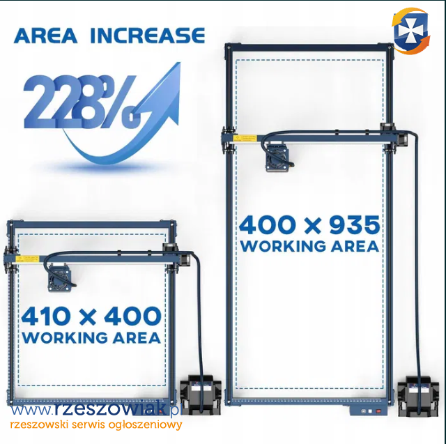 W zestawie NOWE nigdy nie rozpakowane: Rozszerzenie dzięki któremu można szybko uzyskać ogromny obszar grawerowania 410x940mm (226% standardowego S30).