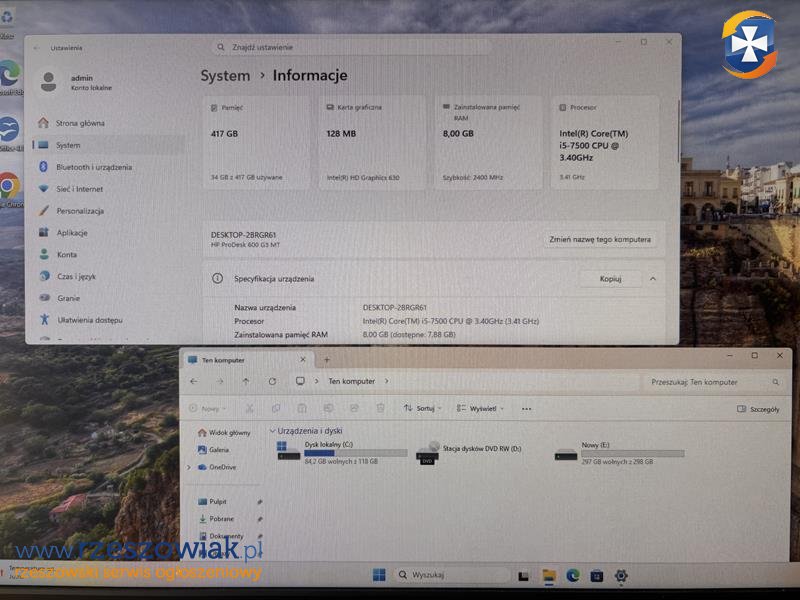 - Procesor: Intel Core i5-7500 3.80GHz 3.80GHz (4 rdzenie)