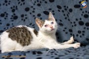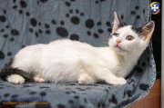 ILOCZYN â biały z czarnymi plamkami na głowie, malutki, wyluzowany, mruczący, urzekający urodą kocur. Urodzony w lipcu 2025