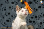 Niech was nie zwiedzie inność zawarta w jego oczach, to tylko taka zasłona dymna :) ten młodzieniec ma w sobie tyle energii co mała elektrownia atomowa. Jest zwinny niczym lampart, sprytny jak lis i uroczy jak przystało na prawdziwego kocura. Wędka to jego ulubiona zabawka, a powieszona w dostępnym miejscu sprawia, że nie da jej spokoju. Iloraz kuwetkuje perfekcyjnie. Jedzonko to jego najlepszy przyjaciel, co znajdzie w miseczce wszystko zje do ostatniego okruszka.