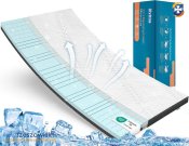 Oddychający i chłodzący: kanały powietrzne rozmieszczone w rdzeniu materaca i boczna siatka zapewniają optymalną cyrkulację powietrza oraz zwiększają oddychalność i odprowadzanie ciepła. W połączeniu z nadającym się do prania (poniżej 40°), przyjaznym dla skóry pokrowcem na materac z certyfikatem Öko-Tex Standard 100 (44% włókno wiskozowe + 63% poliester) i chłodzącą pianką żelową nakładka żelowa zapewnia przyjemny, chłodny klimat do spania.