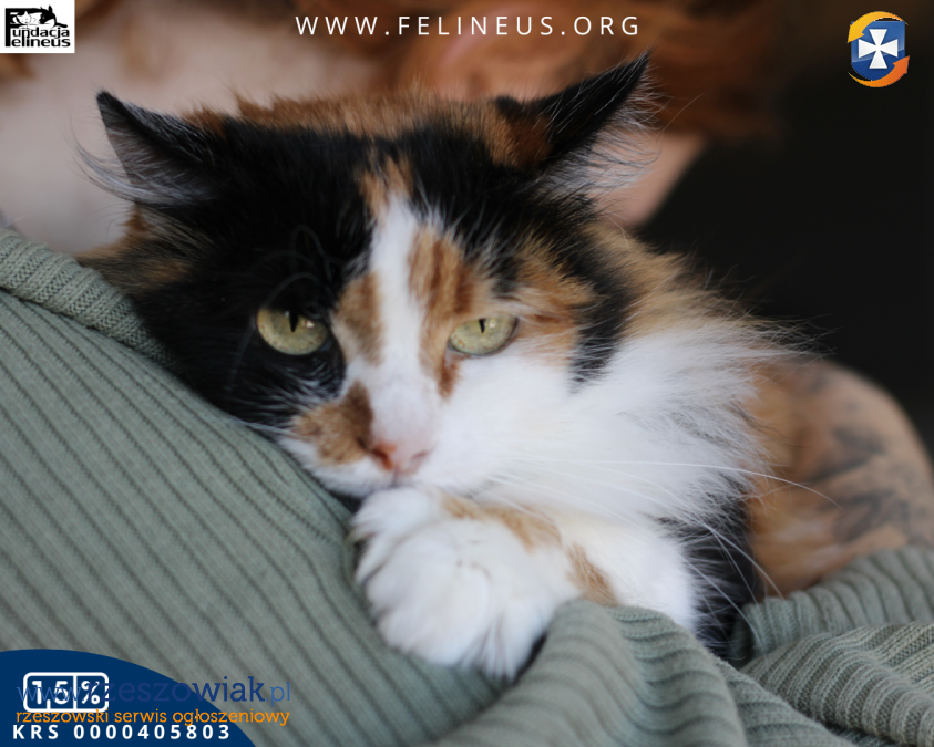 Iriska, kotka urodzona w kwietniu 2021 roku. Iriska to kotka o wielkim sercu, choć życie zdążyło nauczyć ją ostrożności. Jest nieśmiała, ale kiedy dasz jej szansę i trochę czasu, odkryjesz w niej prawdziwy skarb. Na co dzień jest cicha i skryta, ale wystarczy jeden czuły dotyk, by przemieniła się w prawdziwego traktorka. Gdy poczuje ciepło Twojej dłoni, zamyka oczy i mruczy, jakby cały świat wokół przestawał istnieć. To kotka, która w swojej delikatności skrywa ogrom miłości â wystarczy jej pozwolić się otworzyć. W domu tymczasowym bardzo zaprzyjaźniła się z kotką Szyszką dlatego wspólna adopcja byłaby dla obu idealna.