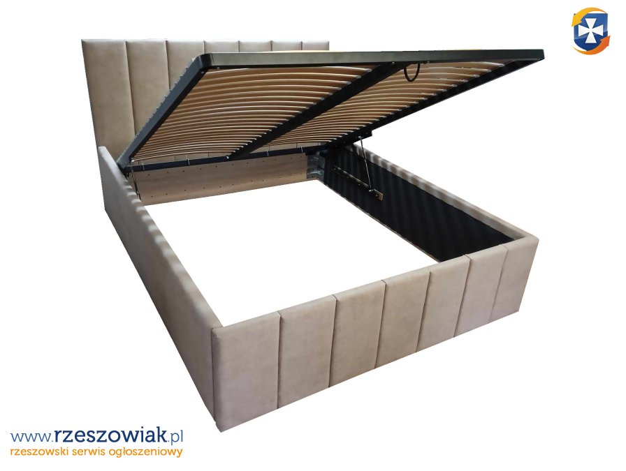 Stelaż jest podnoszony do góry który umożliwia włożenie pojemniki lub kartony świetnie sprawdzi się w domach, w których brakuje miejsca do przechowywania. Będzie stanowił idealną skrytkę nie tylko na pościel, ale również na inne przedmioty, na które brakuje miejsca w pokoju. Pozwoli zachować porządek w pomieszczeniu, ale również odciąży przepełnione rzeczami szafy.