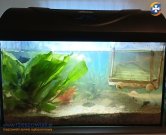 Jest do sprzedania akwarium 50 dług. x 30 wys. x 24 szer. Kpl. ( Pompka, termometr, grzałka ) + separator + dodaje jeszcze zawartość akwarium, 2 glonojady, ślimak, krewetka, 4 x kiryski, 20 x molinezje, 4 x kolorowe, piasek, rośliny.