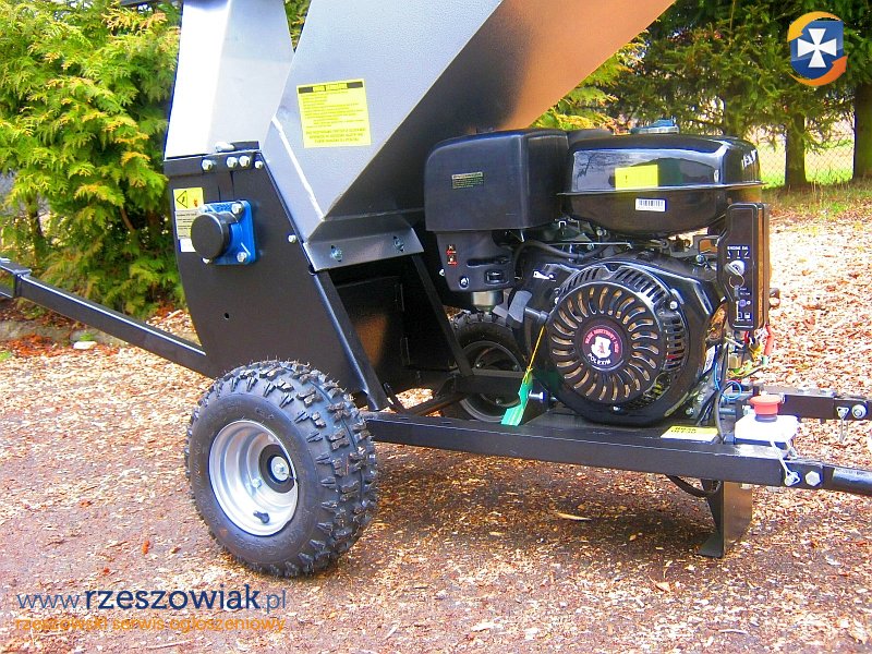 Rębak rozdrabnia gałęzie o maksymalnej średnicy 50-60 mm plus ewentualne rozgałęzienia i napędzany jest ekonomicznym, silnikiem benzynowym o mocy 15 KM .