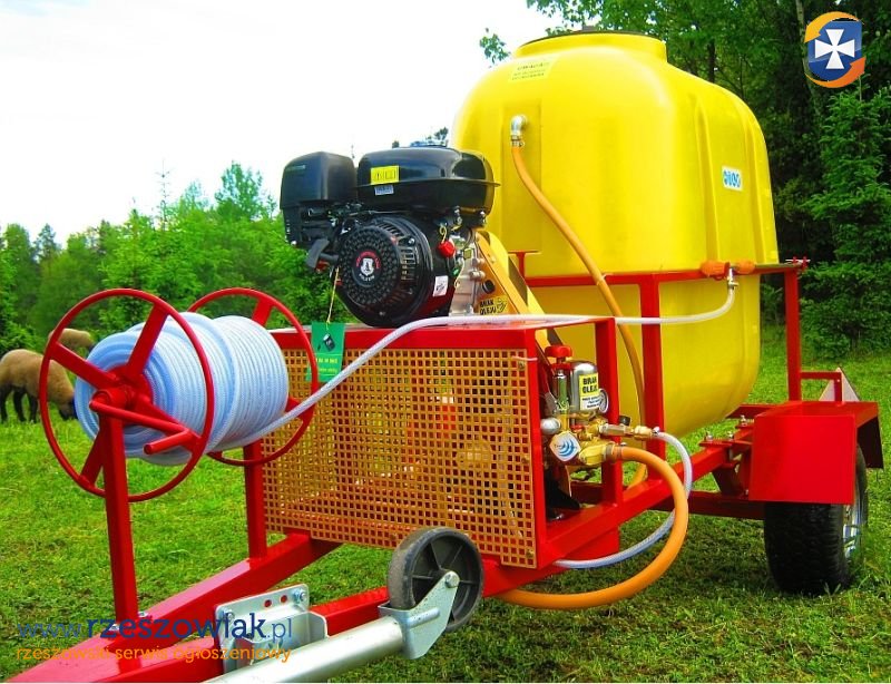Opryskiwacz standardowo posiada bęben z zapasem 50 metrów specjalnego, zbrojonego węża wytrzymującego wysokie ciśnienie ( węże od wytrzymałości min. 6MPa) oraz odpornego na działanie środków chemicznych stosowanych w ochronie roślin.