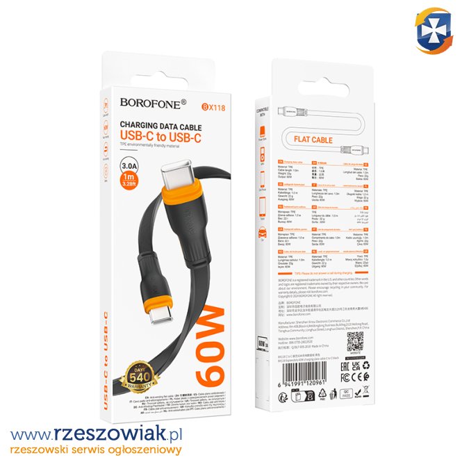 Kabel BX118 Esplendido â wytrzymały i stylowy kabel łączący elastyczność z wydajnością ładowania. Wykonany w całości z TPE, zapewnia długą żywotność i odporność na zagięcia, a precyzyjna struktura rdzenia gwarantuje stabilny przesył mocy.