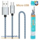 Kabel dla urządzeń ze złączem micro-USB w oplocie z wytrzymałego nylonu o maksymalnym natężeniu prądu 2,4 A.