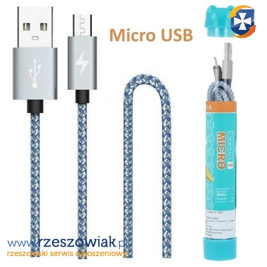 Kabel dla urządzeń ze złączem micro-USB w oplocie z wytrzymałego nylonu o maksymalnym natężeniu prądu 2,4 A.
