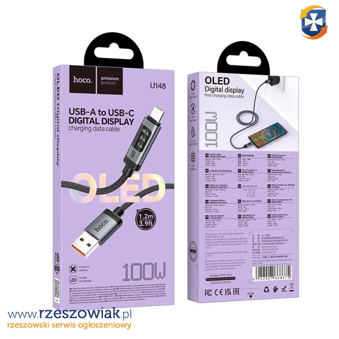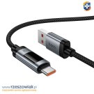 Kabel do szybkiego ładowania USB-A do USB-C z wyświetlaczem OLED. 100W 5A 120cm. Kabel w oplocie wzmacniającym.