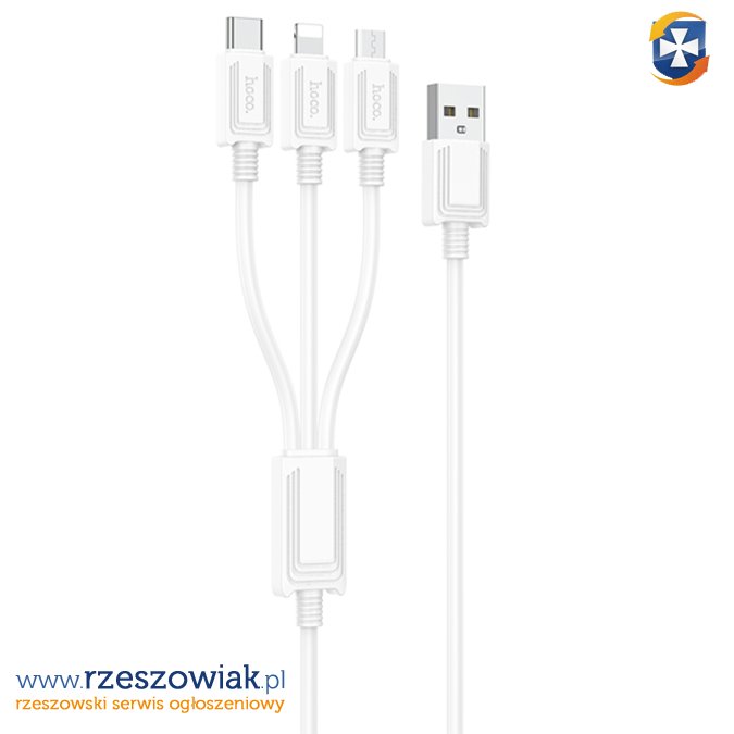 Wyposażony w trzy końcówki: Lightning, Micro USB, USB-C, pozwala na jednoczesne korzystanie ze wszystkich, umożliwiając ładowanie.