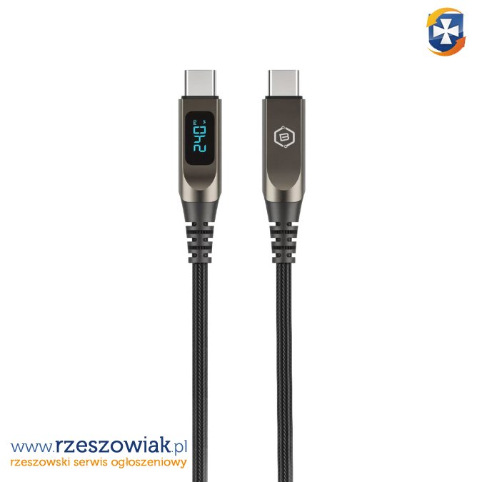 Kabel Lumix pleciony Typ C na Typ C PD 240W 5A z wyświetlaczem LED 1,2 m Apple CarPlay / Android Auto czarno-szary.