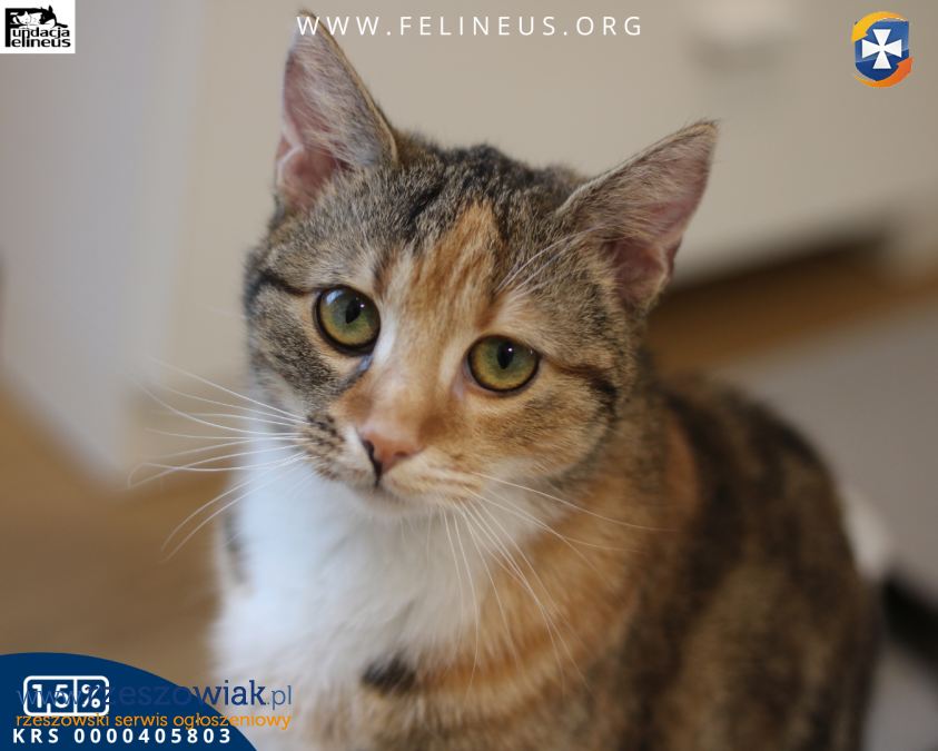 Kotka jest wykastrowana, odrobaczona, testy FeLV/FIV ujemne. Karmelka szuka domu niewychodzącego, z zabezpieczonymi oknami i balkonem.