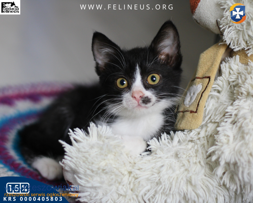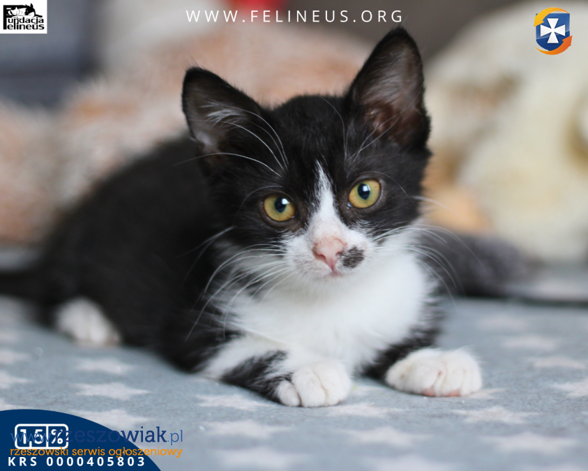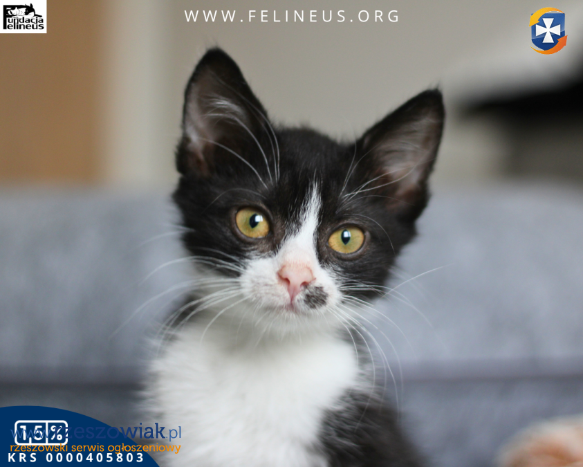 Klaris, czyli czarno-biała koteczka, z uroczą plamką na pysiu (niczym Marilyn Monroe), urodzona w sierpniu 2025 roku. To zdecydowanie mały kot z wielkim charakterem. Ta mała dama ma w sobie 100% słodyczy i tyle samo charyzmy. Jeśli coś jej nie pasuje, lub czegoś bardzo pragnie, głośno dopomni się o swoje. Jest małym łakomczuszkiem, zawsze pierwszym przy misce. W domu wszędzie jej pełno. Uwielbia zabawy, te z człowiekiem, te z innymi kotami, ale także te we własnym zakresie, bo Klaris to kot, który nigdy się nie nudzi i sam zorganizuje sobie czas. A kiedy szaleństwa zmęczą i brzuszek jest pełny, przychodzi czas na tulaski i mruczanki, pełne słodkich, kocich wygibasów. To wszystko sprawia, że w Klaris w mig można się zakochać. Malutka szuka więc kogoś, kto odda jej swoje serce i kawałek miejsca w swoim domu. Klaris szuka odpowiedzialnego opiekuna, który dla jej bezpieczeństwa zabezpieczy okna/balkony siatką. Do nowego domu może pojechać wspólnie z innym kociakiem z tymczasu, jako towarzyszka dla kota rezydenta, lub jako jedynaczka.