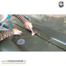 1. Powierzchnia w miejscu przebicia lub przecięcia powinna być sucha, czysta i odtłuszczona przy pomocy acetonu technicznego. Z wyrobami z PCV można pracować natychmiast, a w przypadku tkanin gumowanych należy usunąć warstwę gumy aż do sznurka, bądź dratwy w miejscu naprawy za pomocą np. papieru ściernego.