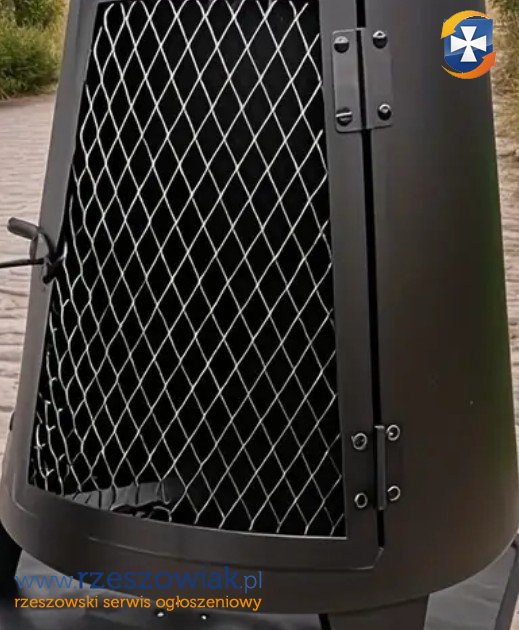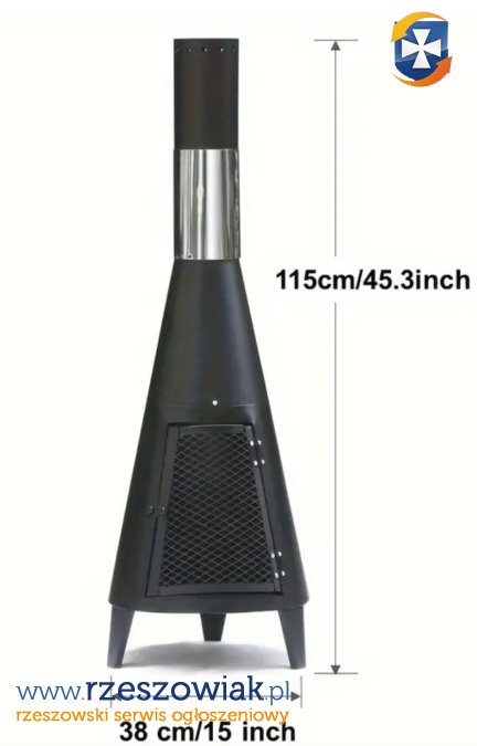 Komin zewnętrzny z drzwiczkami z siatki do oglądania płomieni, czarna żelazna chiminea, lekki i przenośny, narzędzia do montażu w zestawie.