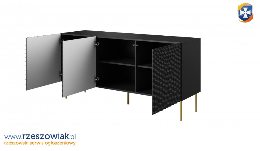 Komoda HOLE sprawi, że nie będziesz mógł oderwać od niej wzroku. Niezwykle dekoracyjna oraz bardzo praktyczna. Zachwyca niespotykanie frezowanymi frontami. Dużym atutem są również wysokie, metalowe nóżki, dzięki którym ułatwi to codzienne utrzymanie porządku.