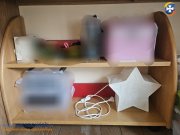 Komplet trzech mebli: Stojąca witryna Biurko Półeczki na kółkach