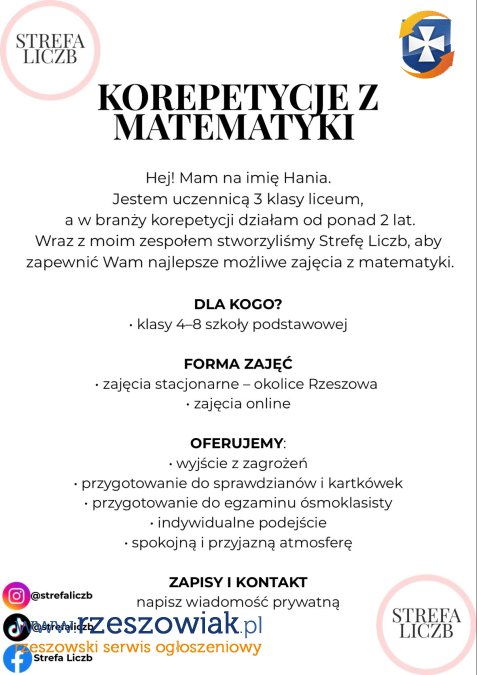 Korepetycje z matematyki klasy 4-8 Zajęcia odbywają sie stacjonarnie oraz online Okolice Rzeszowa Zapisy odbywają się w wiadomości prywatnej na instagramie Instagram : strefaliczb