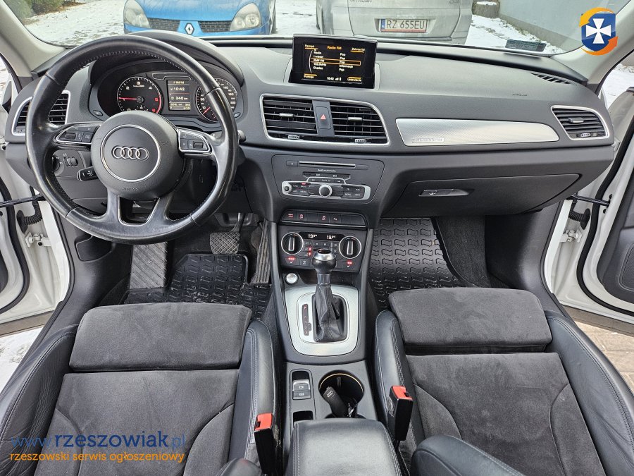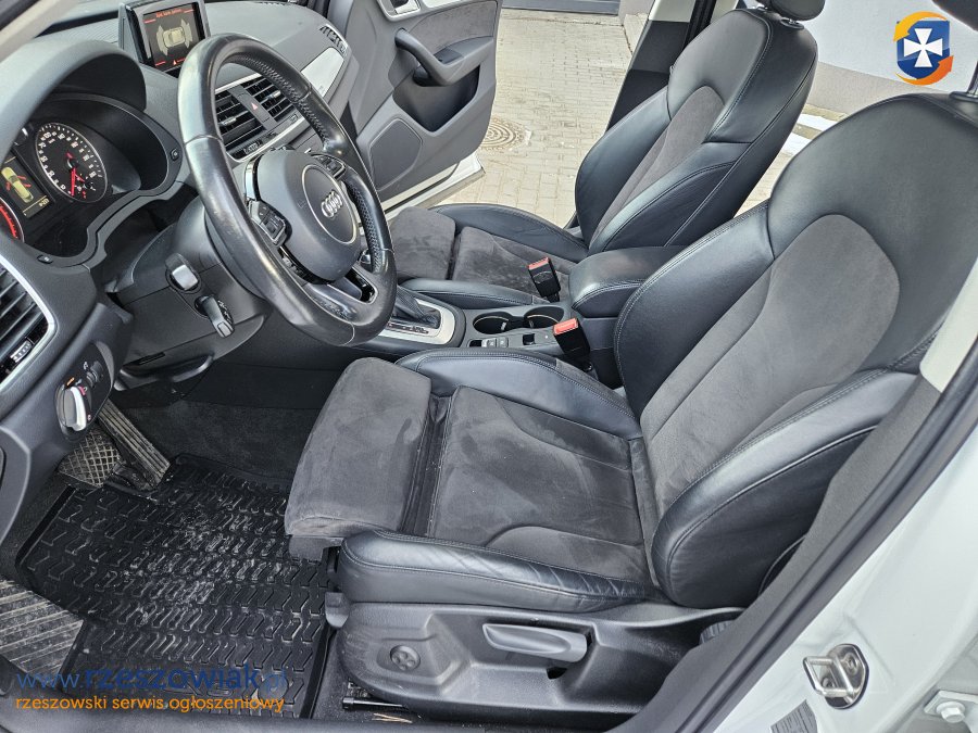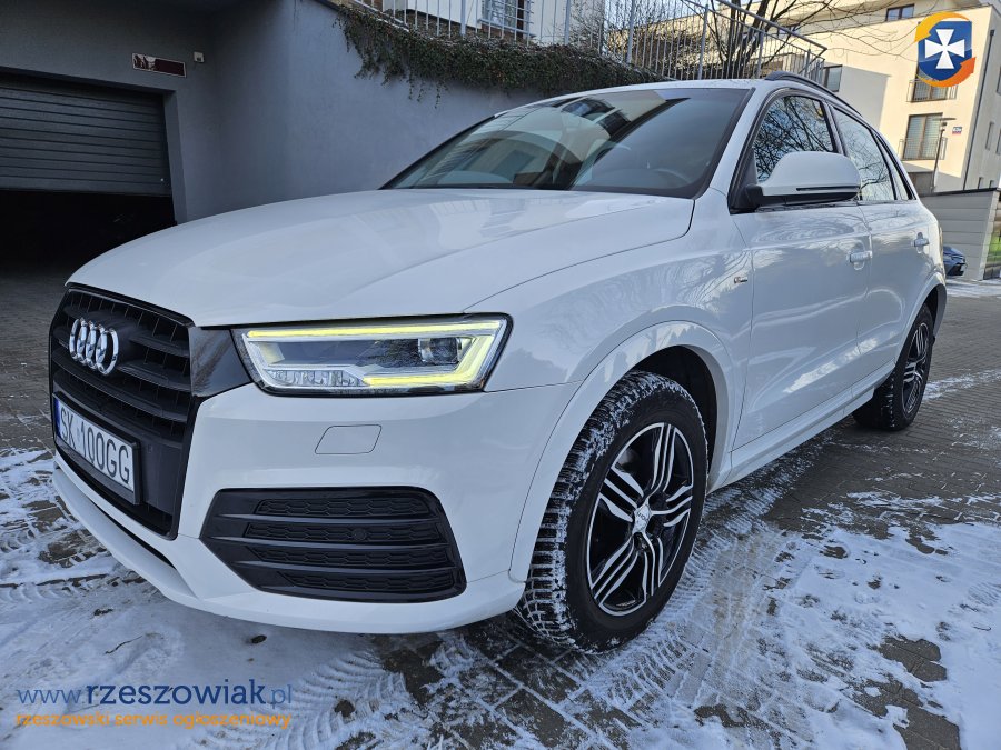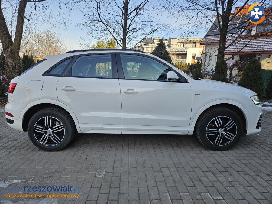 Krajowe Audi Q3 z 2015 roku, przebieg 133.800 km, pakiet S-Line, napęd 4x4 Quattro, automatyczna skrzynia biegów. Silnik 2.0 TDI o mocy 150 KM. Zakup w salonie Audi Sosnowiec i pierwsza rejestracja w 2016 roku.