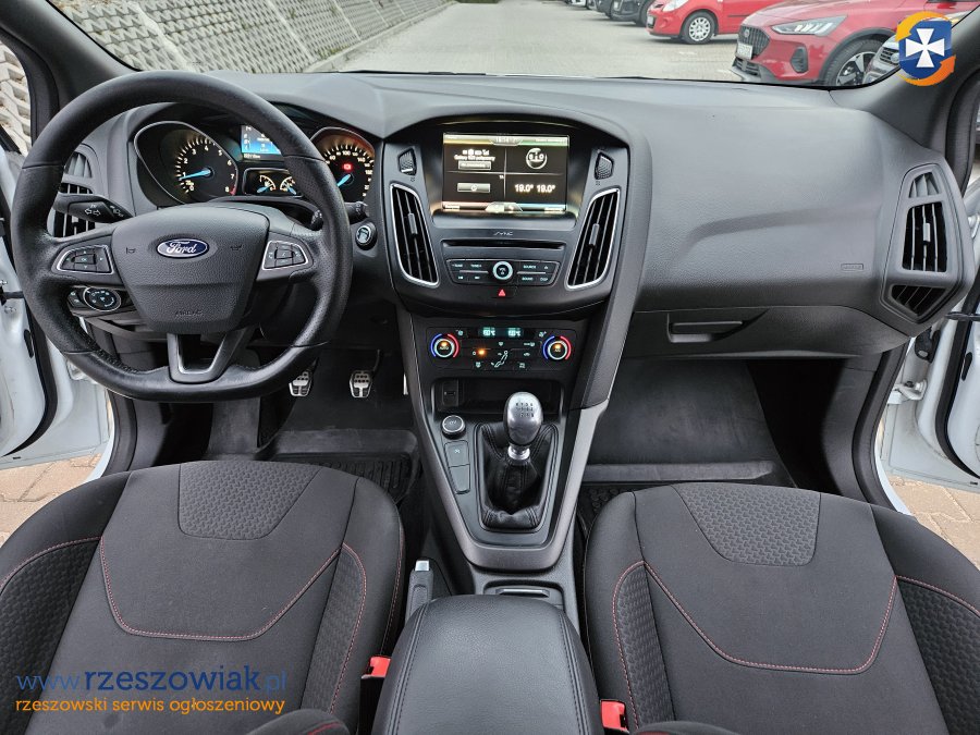 Krajowy Ford Focus z 2016 roku w usportowionej wersji ST-Line. Silnik benzynowy 1.5 o mocy 150 KM, manual 6-biegowy, przebieg 223.000 km.