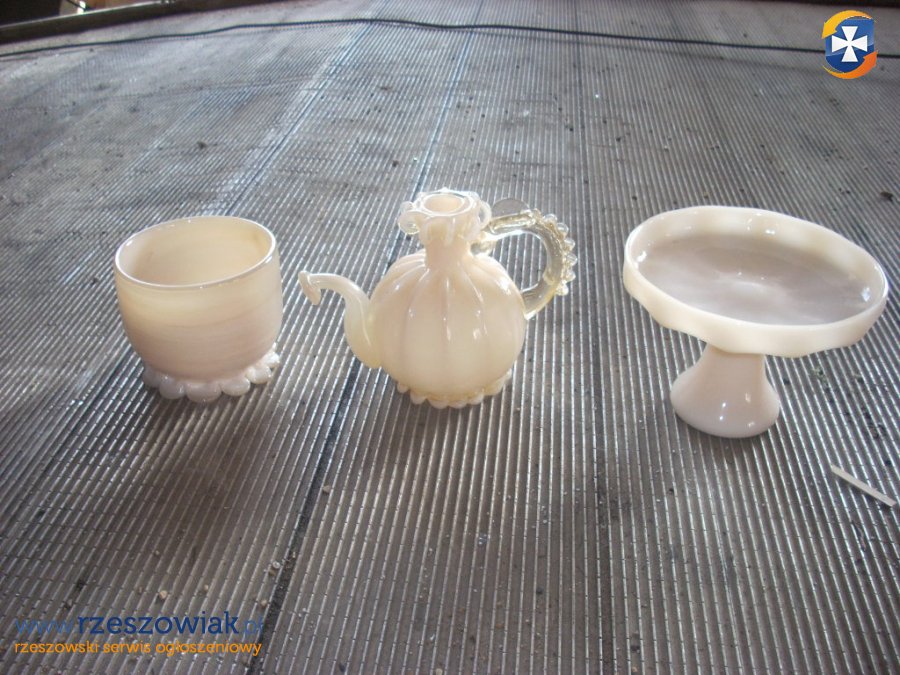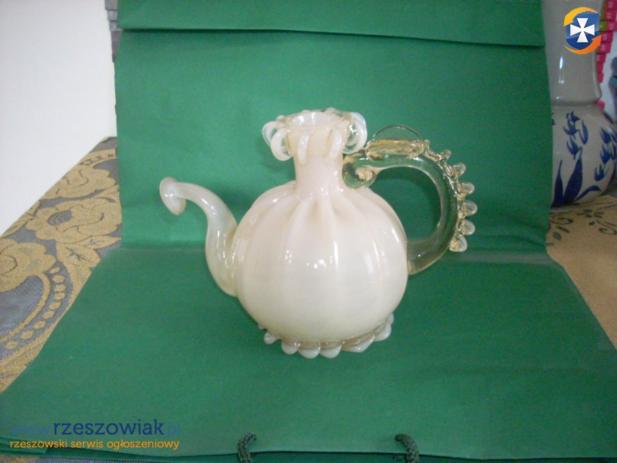 Krakowski Instytut Szkła -projekt J Stłuczan- Orkusz -szkło barwione w masie ręcznie formowane wzór C-573/72 imbryk , patera i czarka -podana cena za czarke