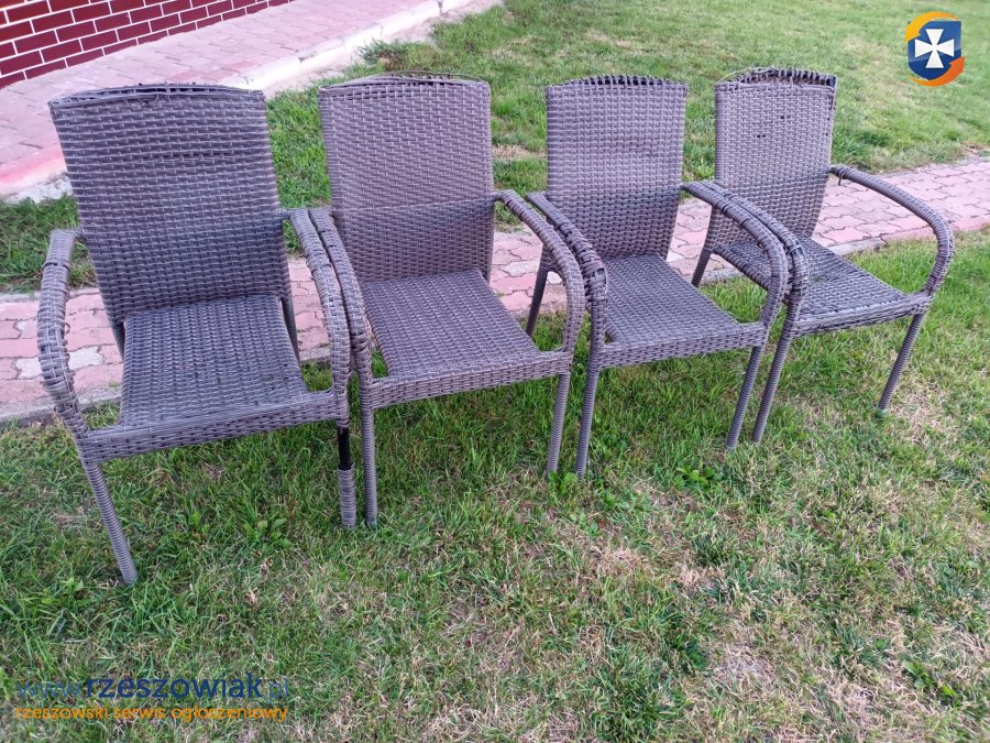 W krzesłach ratan gdzieniegdzie popękał na słońcu. Stelaż krzeseł jest w dobrym stanie nie jest uszkodzony.